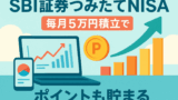 SBI証券のつみたてNISAを主婦目線で解説。毎月5万円積立で資産形成しながらポイントも貯まる体験談、資産推移シミュレーション、クレカ&ポイントサイト活用法までわかりやすく紹介。