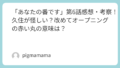 5話で新たに判明したのは、誰かが主人公夫婦を指す「302号室の人」と書いたこと。これはゲームを知った木下さんがイタズラまたは嫌がらせで書いたとも考えたんですが、オープニングの赤い丸を考えるとあれは本物の可能性が高いかなと思います。