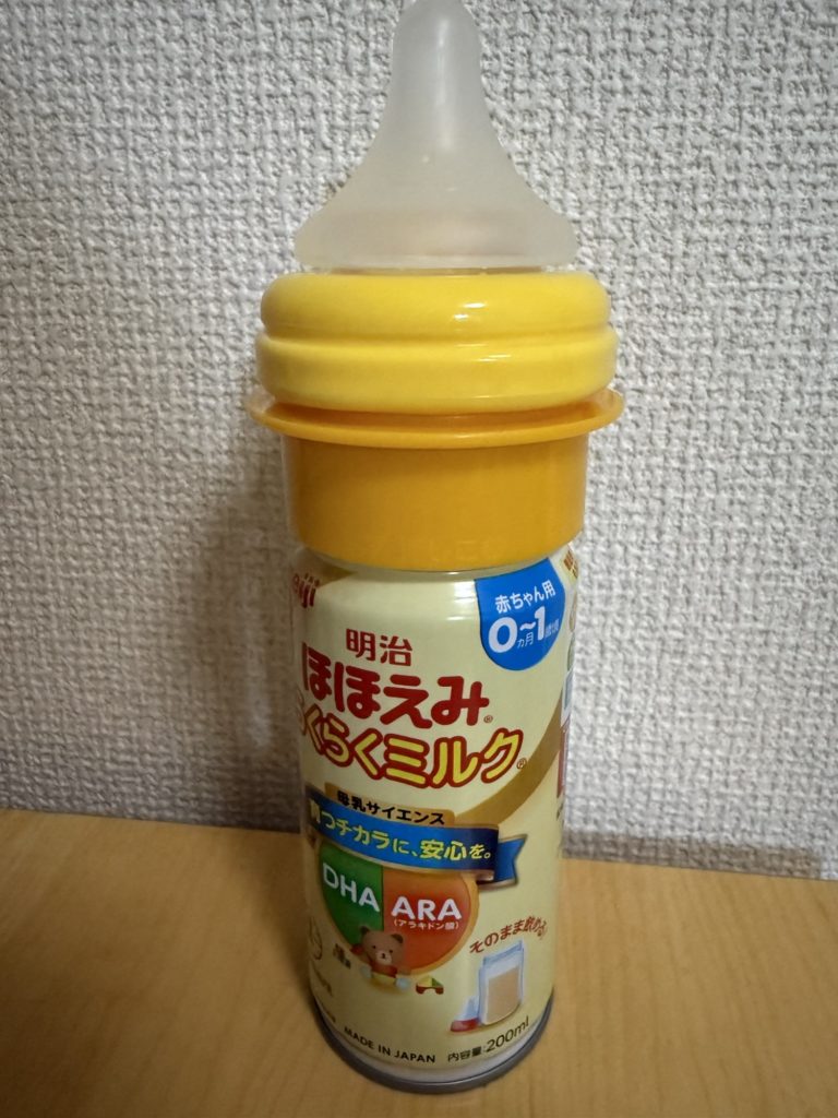 明治の液体ミルクほほえみのらくらくミルクは、調乳不要で赤ちゃんにすぐにミルクがあげられる育児の必需品です。お湯がなくてもどこでも使用できるのが便利すぎて、私も主に外出用にストックしています。災害用の備蓄にもいいですよね。