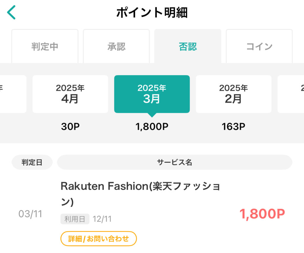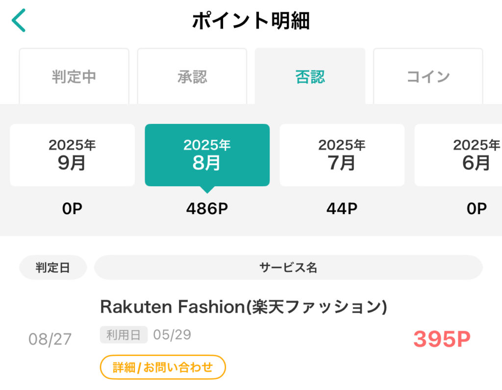 ちなみに他にちょこちょこ否認ポイントがあるのは、私がお買い物のとき「とりあえず経由しとこー」と利用して、実は対象外だったものなので、無視していただけると幸いです^^;