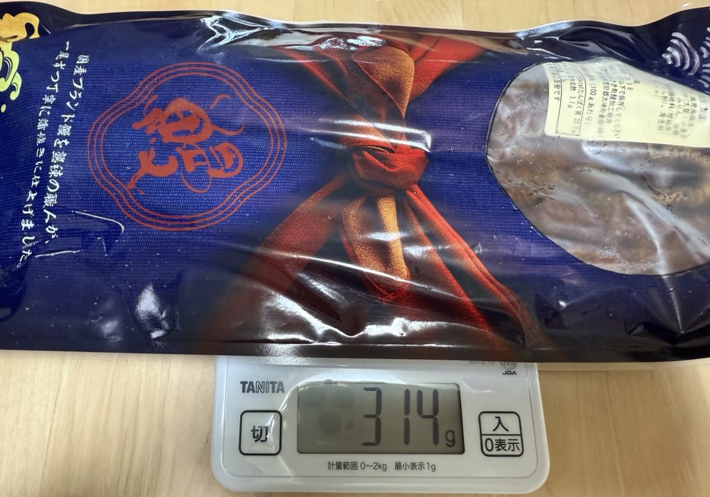 商品説明では270gで超特大なのですが、実際は包装込みで314gですでに大満足です。