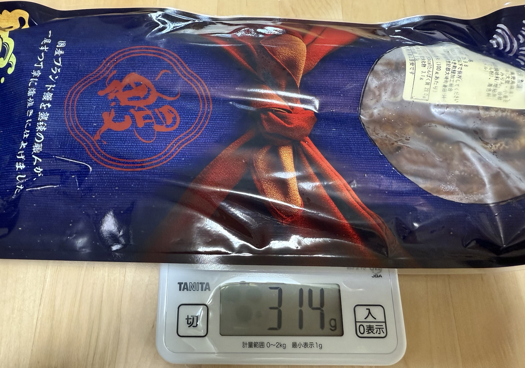 商品説明では270gで超特大なのですが、実際は包装込みで314gですでに大満足です。